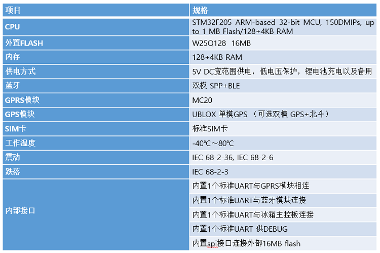設(shè)備周期上報溫度、濕度、電量,以及各種工作狀態(tài)的數(shù)據(jù),IOT核心板接收以后進行數(shù)據(jù)分析,并上報數(shù)據(jù)和當前GPS信息,用戶可以隨時查看,若發(fā)現(xiàn)冰箱狀態(tài)異常系統(tǒng)將即時上報。